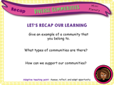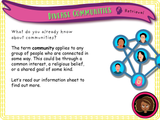 Diverse Communities PSHE Lesson. A one hour-long, very detailed, fully resourced KS2 PSHE lesson. In this lesson, the students will explore what it means to belong to a community. We will discuss different types of communities (family, social, classroom, school, neighbourhood etc) and various reasons why groups of people are connected. We will look at some of the different ways that we can support our communities, through volunteering, helping others and behaving responsibly in shared spaces.