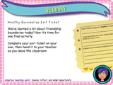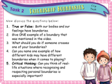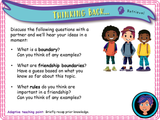 Friendship boundaries PSHE lesson. In this lesson, the students will be introduced to the concept of friendship boundaries. The students will discuss personal boundaries in the context of what is appropriate in friendships. We will reflect on a number of scenarios including bossiness, telling embarrassing stories, taking other people's belongings, overstaying your welcome and respecting personal space.