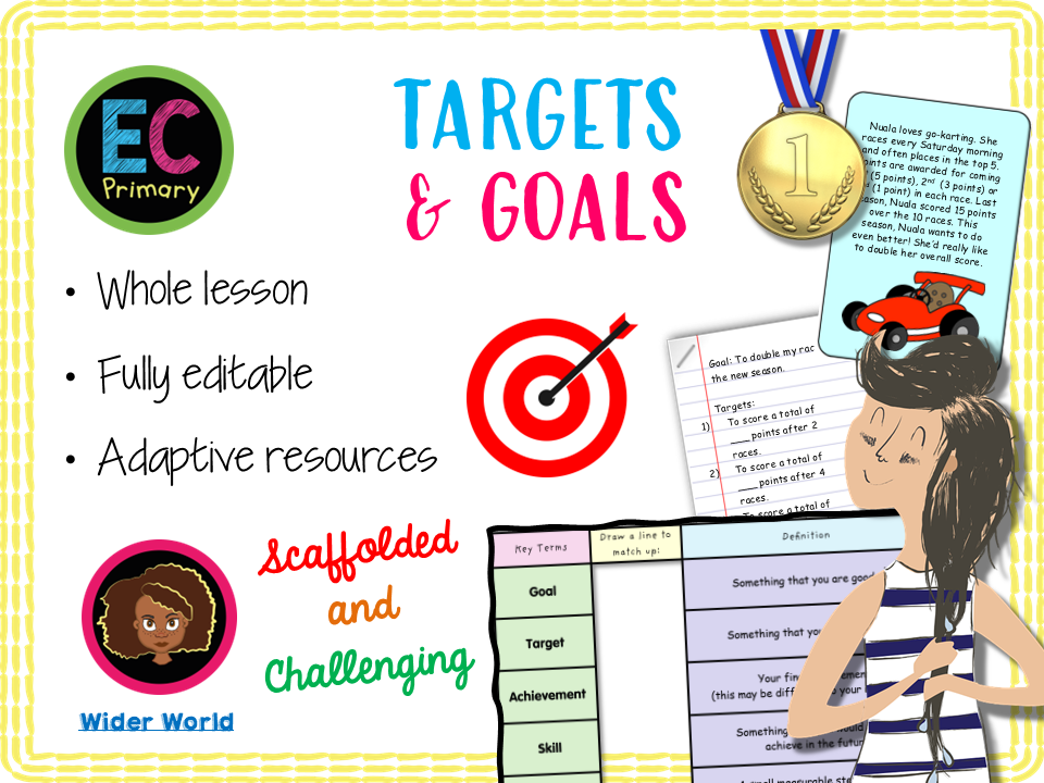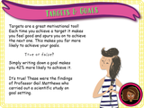 Goals and targets KS2 PSHE Lesson. In this lesson, the students will explore the concept of goal setting. We will look at the reasons why people set personal goals, and through a series of examples explore the different ways that a goal can be broken down into smaller, manageable targets. The students will learn how to create SMART (specific, measurable, achievable, relevant, time-based) targets and apply their skills to a series of case studies.