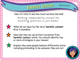 Harmful content and contact PSHE Lesson. A one hour-long, very detailed, fully resourced PSHE lesson suitable for KS2. In this lesson, the students will discuss online danger and the risks associated with accessing inappropriate material online. We will discuss 'harmful content', the dangers involved in accessing social media sites when we are underage as well as ways that we can protect ourselves. The lesson has been left editable and is filled with engaging activities. It is designed to be ‘no prep’, so you can just pick it up and use it, although it is still adaptable should you wish to.