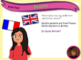 An hour long lesson suitable for KS2 (or possibly lower KS3) all about the meaning of Identity, Citizenship and being ‘British’. It is well differentiated with three-level challenges for each task, contains a variety of activities, an hour long PowerPoint, a clip with questions, a bingo game, new key-term introductions and a ‘History of British Settlers’ focus task. The lesson encourages students to reflect on their own identities as well as their classmates and the two case studies: Cecile and Yonis.