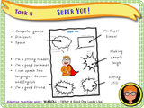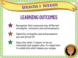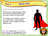 Personal strengths and interests PSHE lesson. A one-hour long, very detailed, fully resourced PSHE lesson suitable for KS2. This lesson has been created for Year 3, however, the contents of the lesson are suitable for students across KS2. In this lesson, the students will reflect on positive qualities in both themselves and others. We will discuss the concept of individuality, and why it’s good to be different. We will discuss personal qualities, interests, and strengths, as well as identifying skills and achievements in ourselves and others. The students will create a superhero based on themselves, and their own unique set of skills and talents.