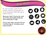 A one hour-long, very detailed, fully resourced PSHE lesson that have been created for Year 5, but is suitable for use across KS2. In this lesson, the students will learn about the different forms of social media as well as the reasons why people are drawn to using it. We will discuss both the benefits and risks associated with social media platforms, as well as highlighting the implications of online safety laws including COPPA and the Online Safety Act 2023. The lesson includes a starter activity, a task to assess the students' prior knowledge, a card sorting task, a video clip activity, a creative task, and a review based plenary.