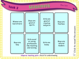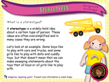 Gender stereotypes KS2 PSHE Lesson. In this lesson, the students will explore gender stereotypes and the negative impact that they can have on a person's career. We will look at some examples of positive and negative stereotypes and discuss how these ideas can lead to people being treated unfairly. We will look at the experiences of women in STEM, with a particular focus on the mistreatment of female scientists throughout history.
