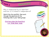 Independence and Responsibility PSHE. 1 hour - 90 mins, very detailed, fully resourced PSHE lesson suitable for KS2 which allows students to investigate how as we get older we take on extra responsibilities which lead to us developing independence skills. Students will explore how it can be both challenging and rewarding to take on extra responsibility.