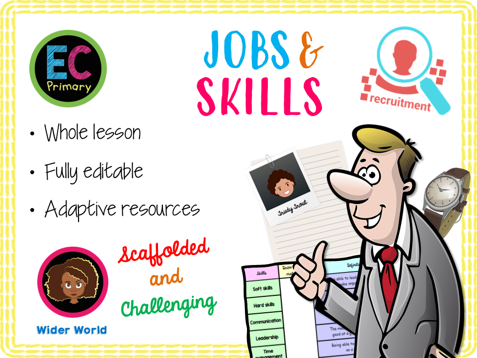 Jobs and skills KS2 PSHE Lesson. In this lesson, the students will explore the different types of skills that employers look for when hiring people. We will look at hard skills and soft skills, and discuss the reasons why communication, teamwork, problem-solving, and leadership are sought after attributes in the workplace