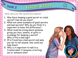 Secrets and surprises - what are good secrets and bad secrets? A one hour, very detailed, fully resourced PSHE lesson suitable for KS2 introducing secrets. This lesson allows students to find out why people keep secrets, why sometimes it’s important not to keep secrets and how we can tell the difference between a good secret and a bad secret - as well as where to go for help.
